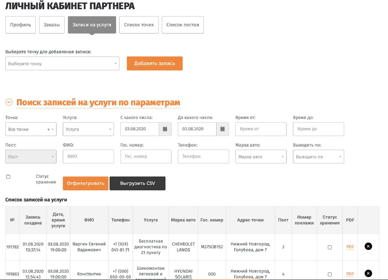 Партнеры используют личный кабинет, чтобы управлять заказами и записями на услуги.