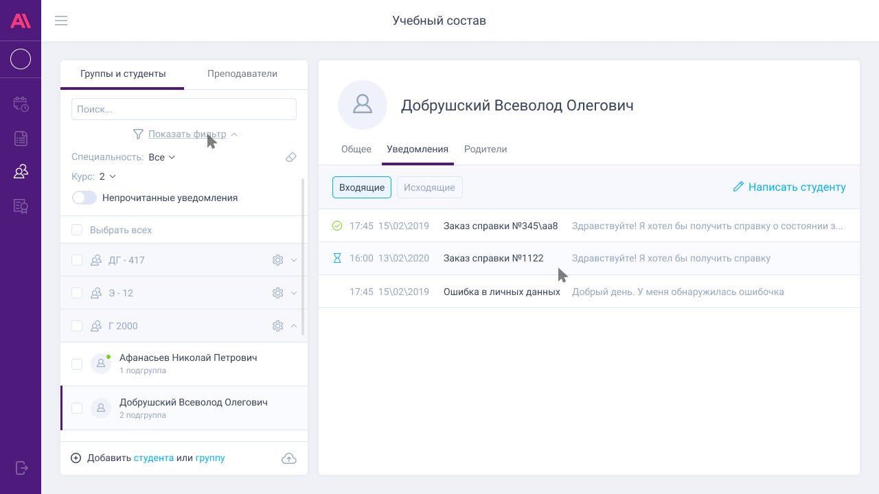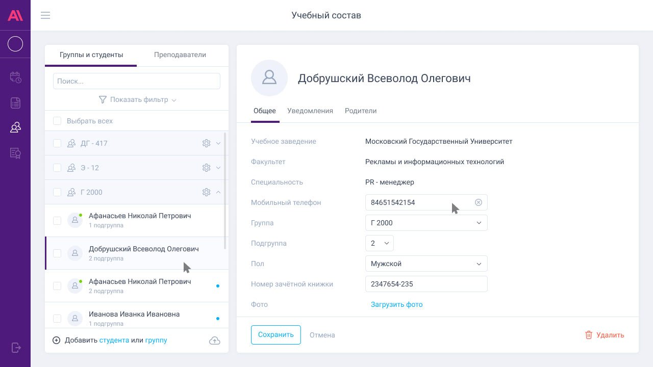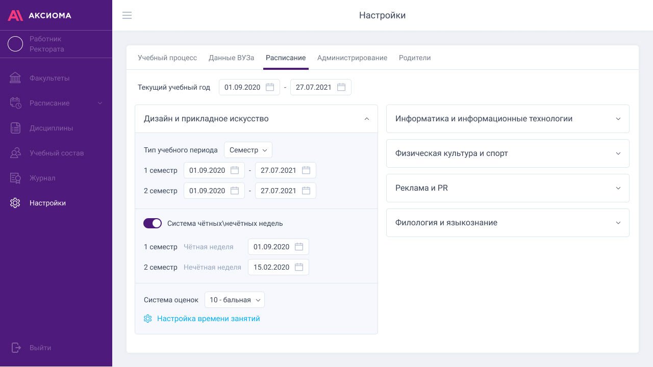 Вместе с заказчиком и при содействием самих ВУЗов у нас получилось создать интуитивно понятную систему, удобную и преподавателям, и студентам.