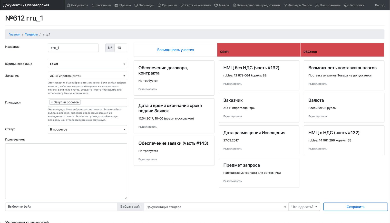В итоге нам удалось создать систему, существенно упрощающую заказчику работу с тендерами: