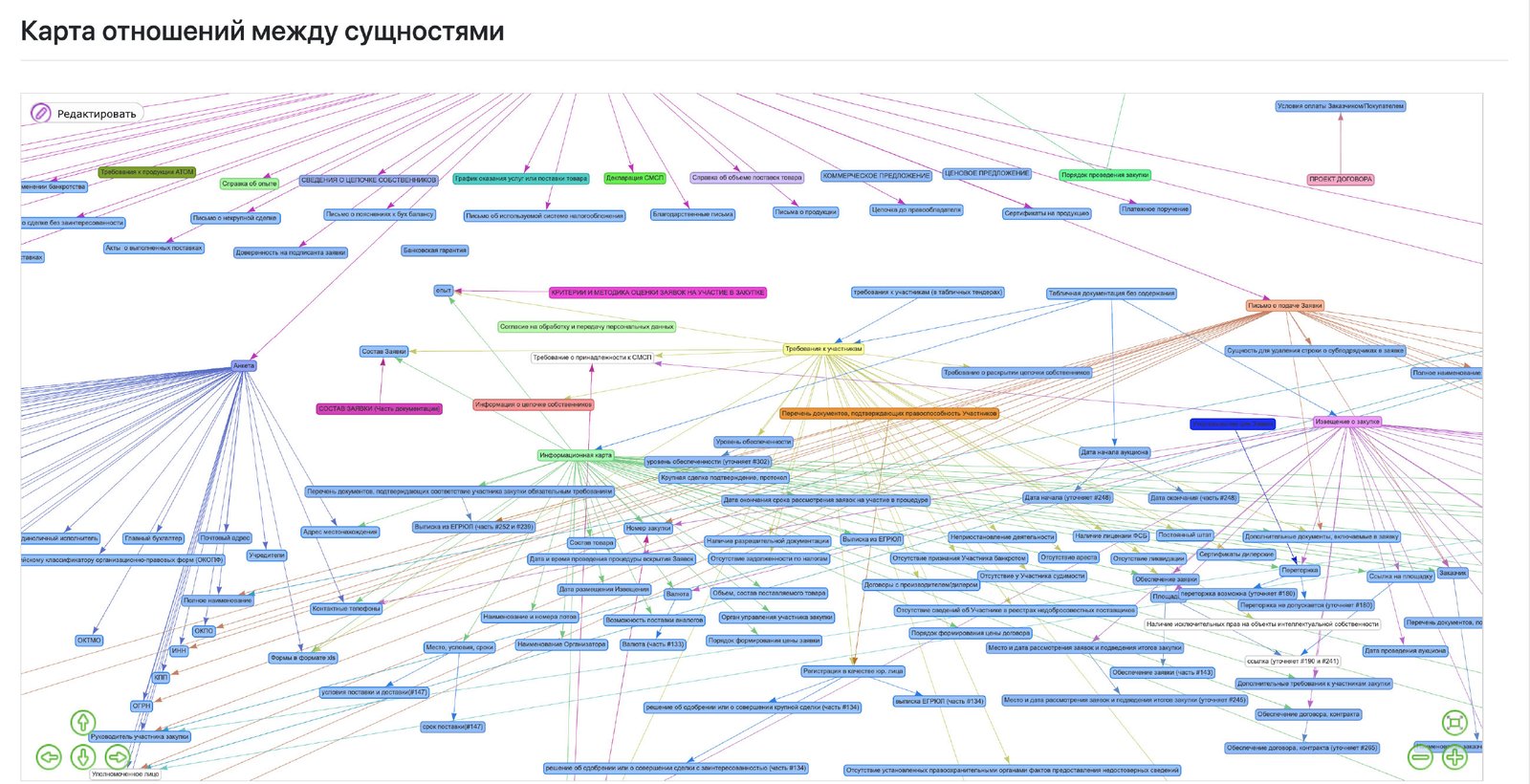 Предварительно заполненные документы можно скачать на странице проекта перед отправкой на площадку автора тендера. На карте ниже показано, как строятся отношения между базовыми сущностями тендера.