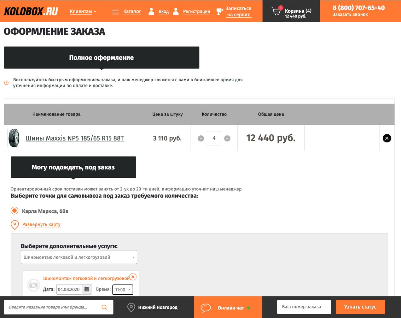 При оформлении покупки клиент может заказать, например, шиномонтаж или замену дисков. Все заказы и информация мгновенно поступают в CRM магазина, а менеджер перезванивает и подтверждает покупку.
