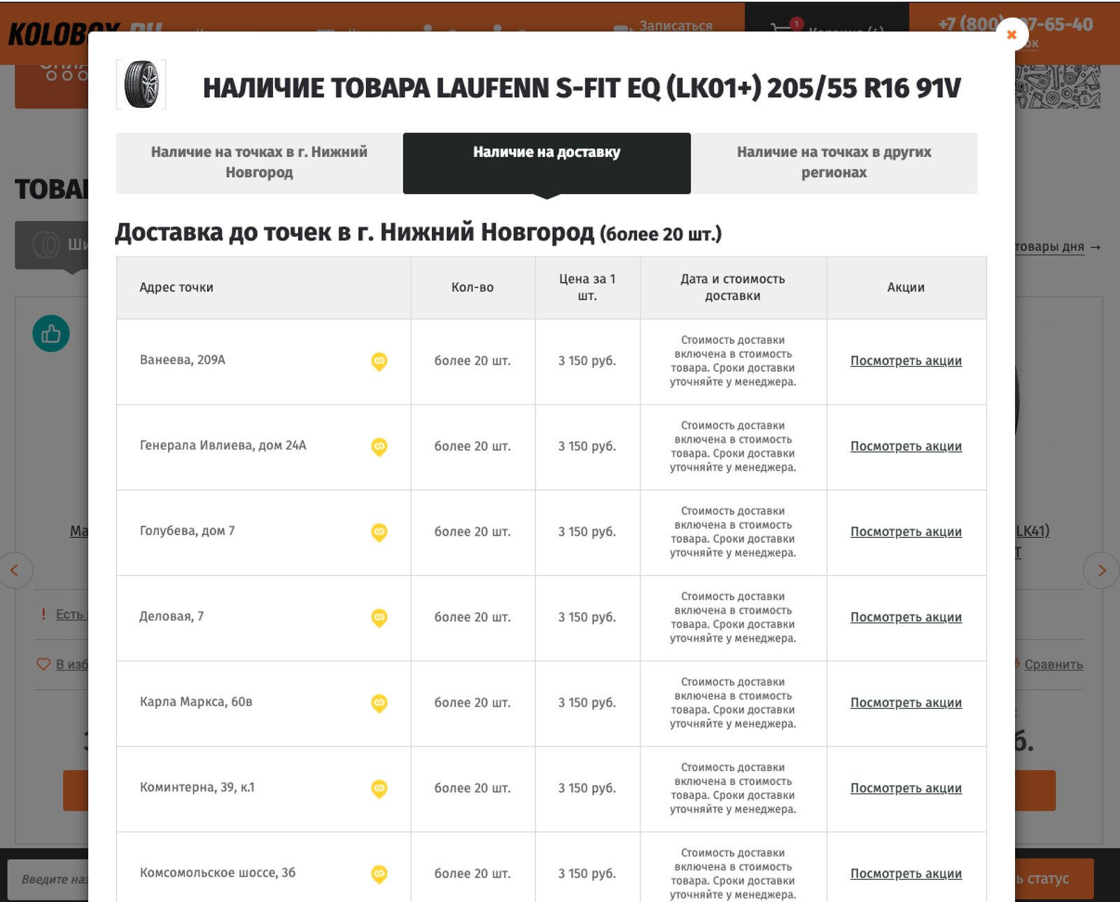 Результат поиска пользователь видит на одной карточке — наличие, стоимость, параметры модели и другая полезная информация. На этом же экране отображаются уведомления о действующих скидках и акциях, а также об особых условиях гарантийных обязательств.